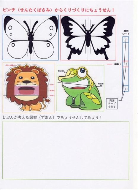 今回の工作はピンチにつけて動くようにした蝶や動物です