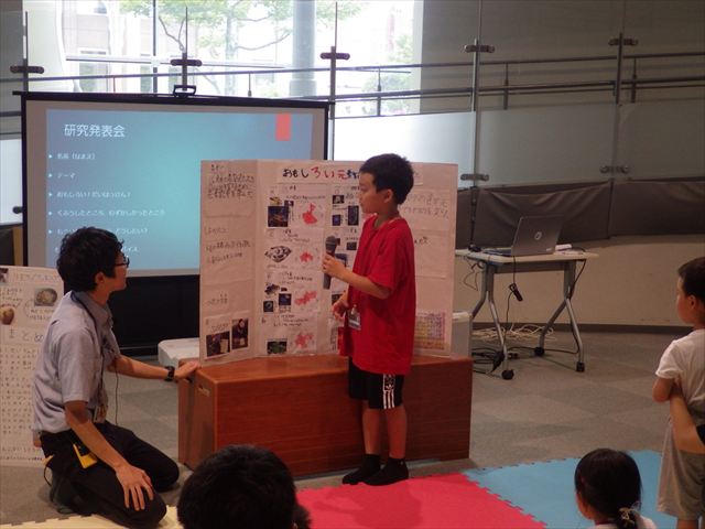 まずは研究発表会から!元素に興味をもって調べて教えてくれました。模型まで作ってきてくれてみんな大興奮!!
