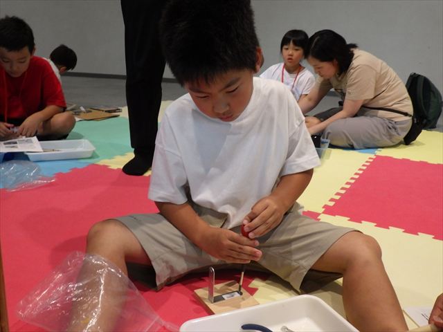 いよいよスポイトロケット作成!工具を上手にを使って集中して作成しています。