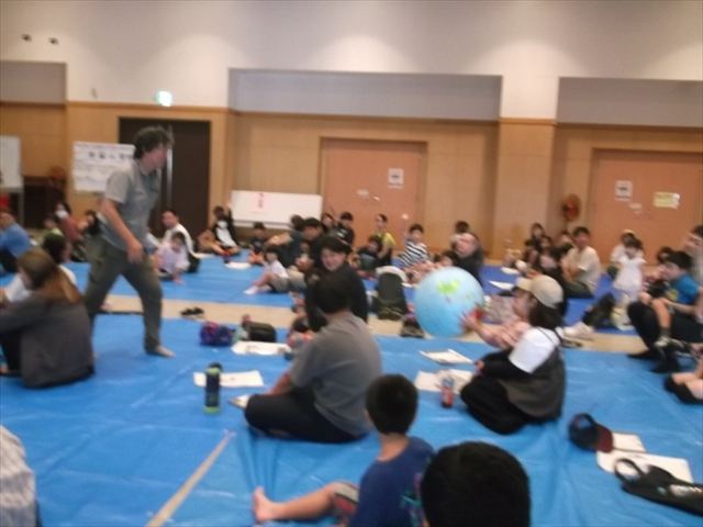 講師の藤井晴彦さん、助手の賀数さんが地球を模したボールを使って講話が始まりました。