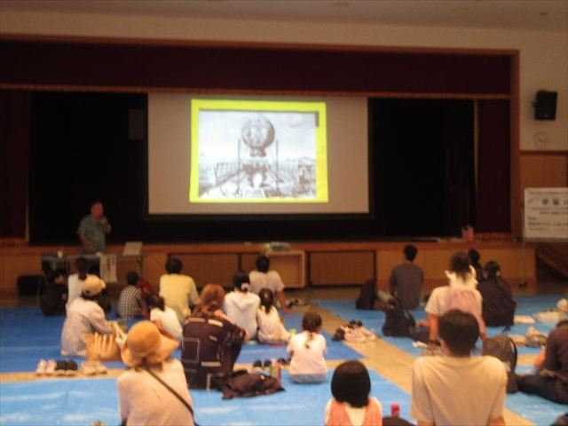 講師の田端研二さん。気球の始まりについての講話からスタート。