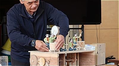 先生がつまみをくるくる回すと人形が楽しそうに動きます
