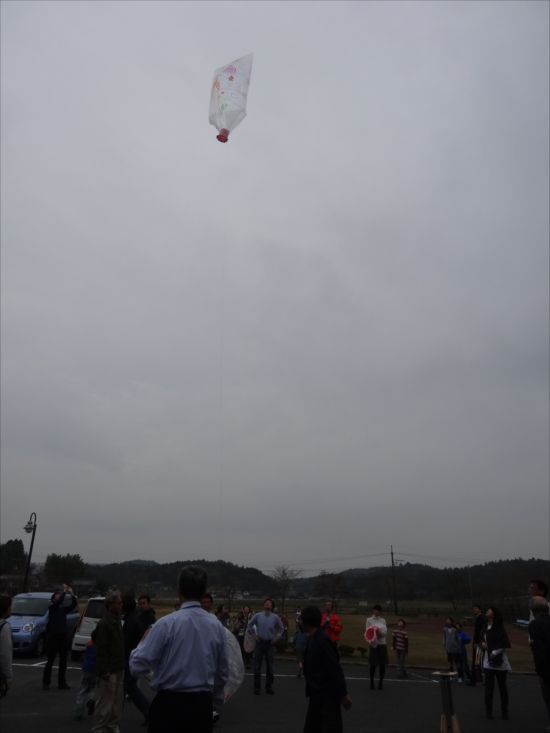 今日はほぼ風がないので、出来上がった気球を持って外へ移動します。