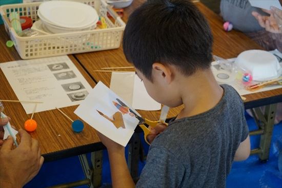 みんな大きさや重りを工夫しながら、紙皿でUFO、フリスビーや飛行機をつくりました。
