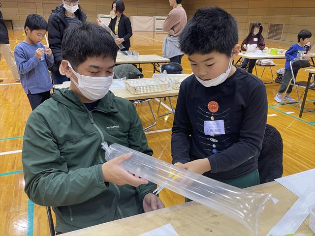 | プログラム | 星のお話 ビー玉ゴマ、地球ゴマ かさ袋ロケット | 講師・スタッフ | 講師:石川県の小学校の先生、民間ボランティア14名 (株)PFU社員の皆さま5名 スタッフ:4名 |