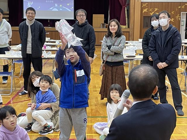 | プログラム | 星のお話 ビー玉ゴマ、地球ゴマ かさ袋ロケット | 講師・スタッフ | 講師:石川県の先生、民間ボランティア12名 (株)PFU社員の皆さま5名 スタッフ:4名 |