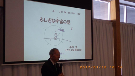 講師はKU-MA(子ども・宇宙・未来の会)会長の平林久先生。