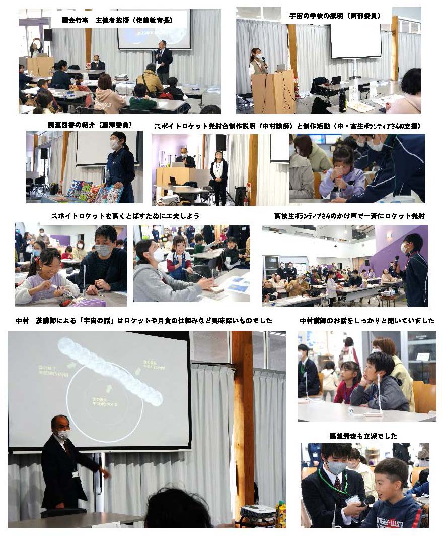 閉会行事での子供たちの感想発表で「宇宙のことを知ることができた」「スポイトロケットを高く飛ばすことができてよかった」等満足度の高い発表となった。
