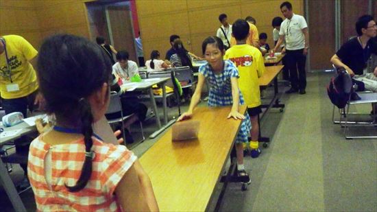 こちらは個人差も少なく、子どもたちは次々と完成させ、机上を滑らせて楽しんだ。