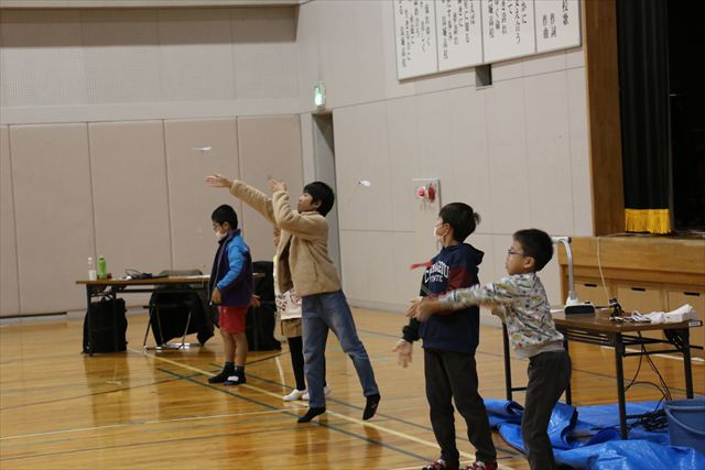参加者の方々から「興味を持って取り組んでいました。風船とマシュマロ、予想を立てて実験し驚いて、とても楽しんでいました。」「竹とんぼと形が違ってもとべると分かってびっくりした。」「講師のお話がとてもおもしろく なんで? を使って話してくれたので、たくさん考えることができました。」等の充実して取り組んだ様子が伝わってくる感想をいただきました。