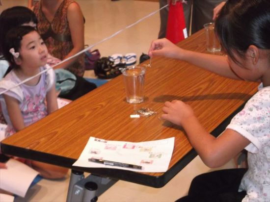 水をこぼさず、いくつ1円玉を入れられるかな?