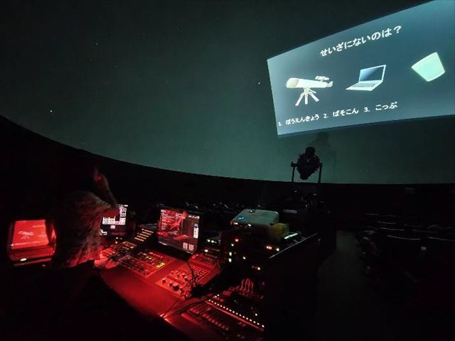 プラネタリム観覧後のミニクイズや質問コーナーで、「ブラックホールまで、どのくらいのきょりがありますか」、「ちきゅうはいつできたのですか」など、次々と質問がでました。