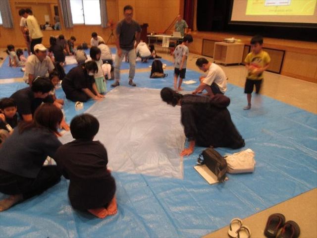 「熱気球」を「3.2.1」と掛け声とともに手を放すと、ふわーと舞い上がる気球の様子に歓声があがり、参加者みんなで喜びました。レポート発表では、用紙にまとめられなったけれどと、実験の様子をとった写真を見せながら発表する子もいました。