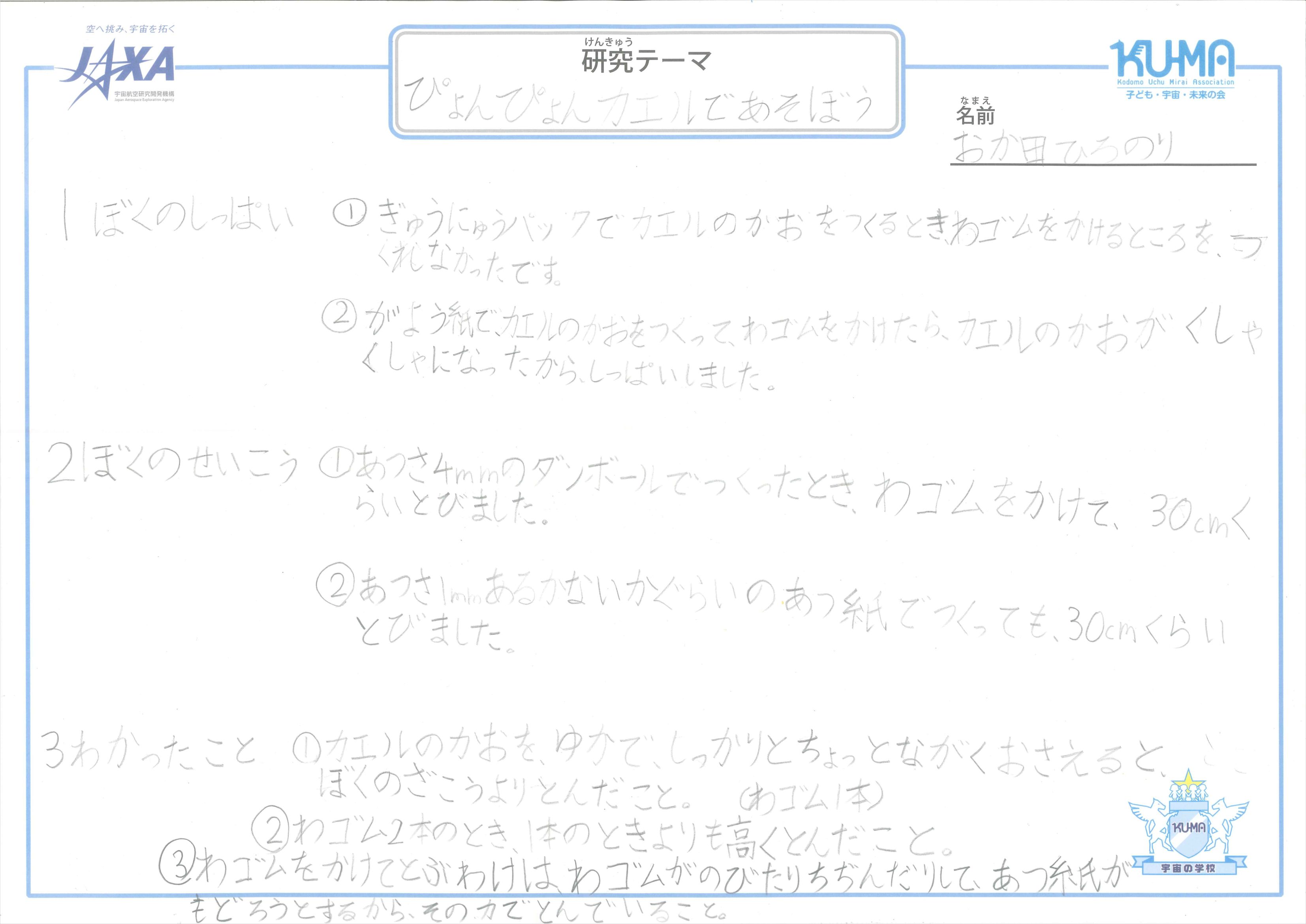 2013「宇宙の学校」家庭学習レポート