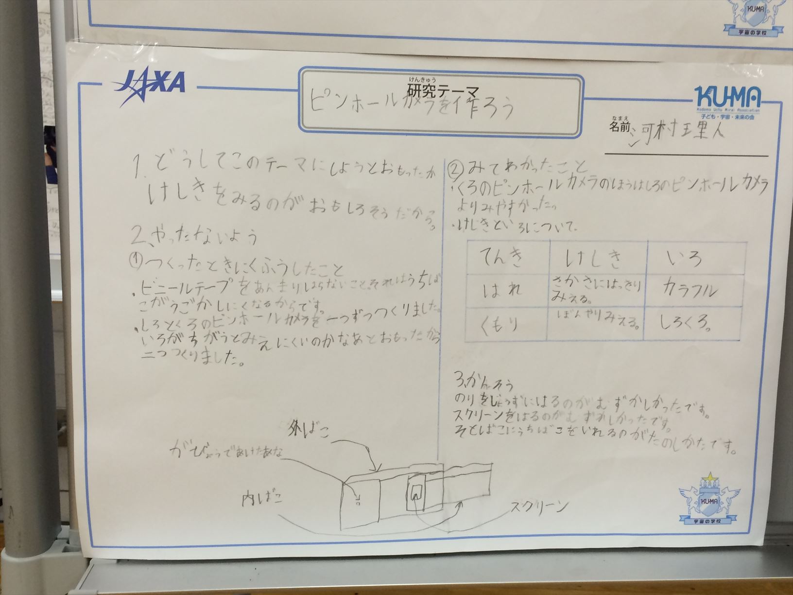 2015「宇宙の学校」家庭学習レポート