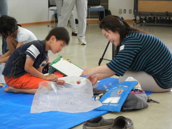 一番のねらいは、身の回りにあるものを利用した工作や実験を親子で一緒に