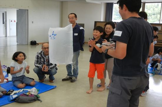 この気球が、上空に向かって進む仕組みを参加者みんなで体験学習しました。