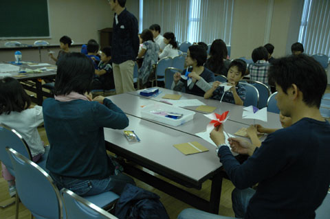 かざぐるま作り。余った材料をもう1セット持ち帰る子どもが多くいました。