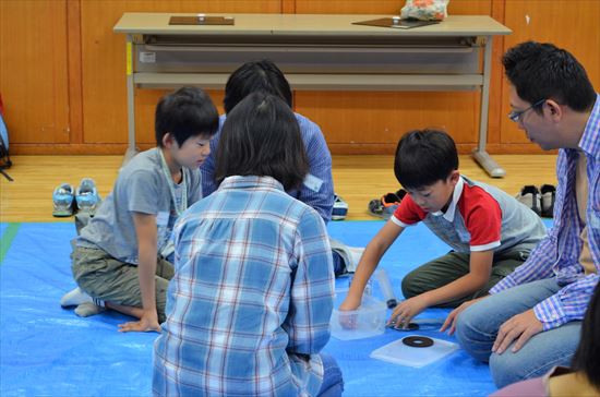 実験では時折歓声が響き渡り、ご家族を交えて仲良く、そして楽しそうに進めていました。