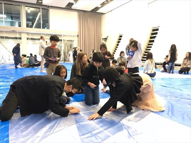 あるグループは⼦供たちが率先して貼り進めていきました。