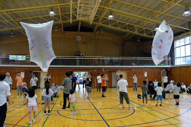 熱気球が体育館天井まで上がると歓声が上がりおおいに盛り上がりました。