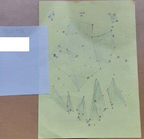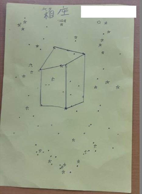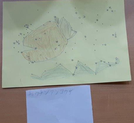 北の星野図に星座を作ってくる課題をやってきて、発表しました。いろいろな星座ができました。子供の持つアイデアの豊かさに驚きました。